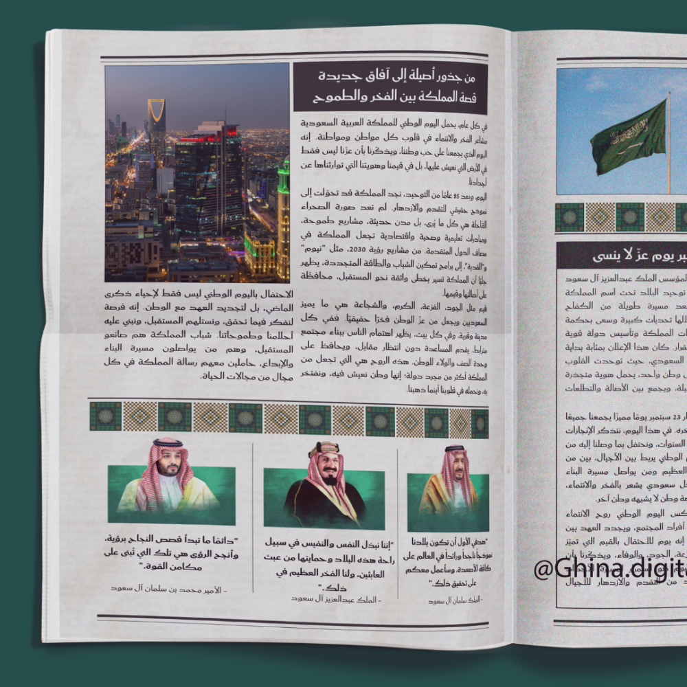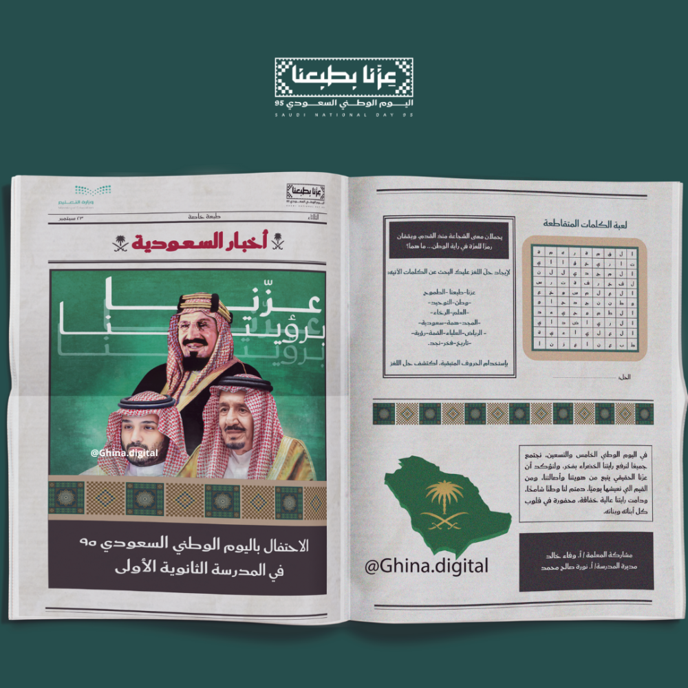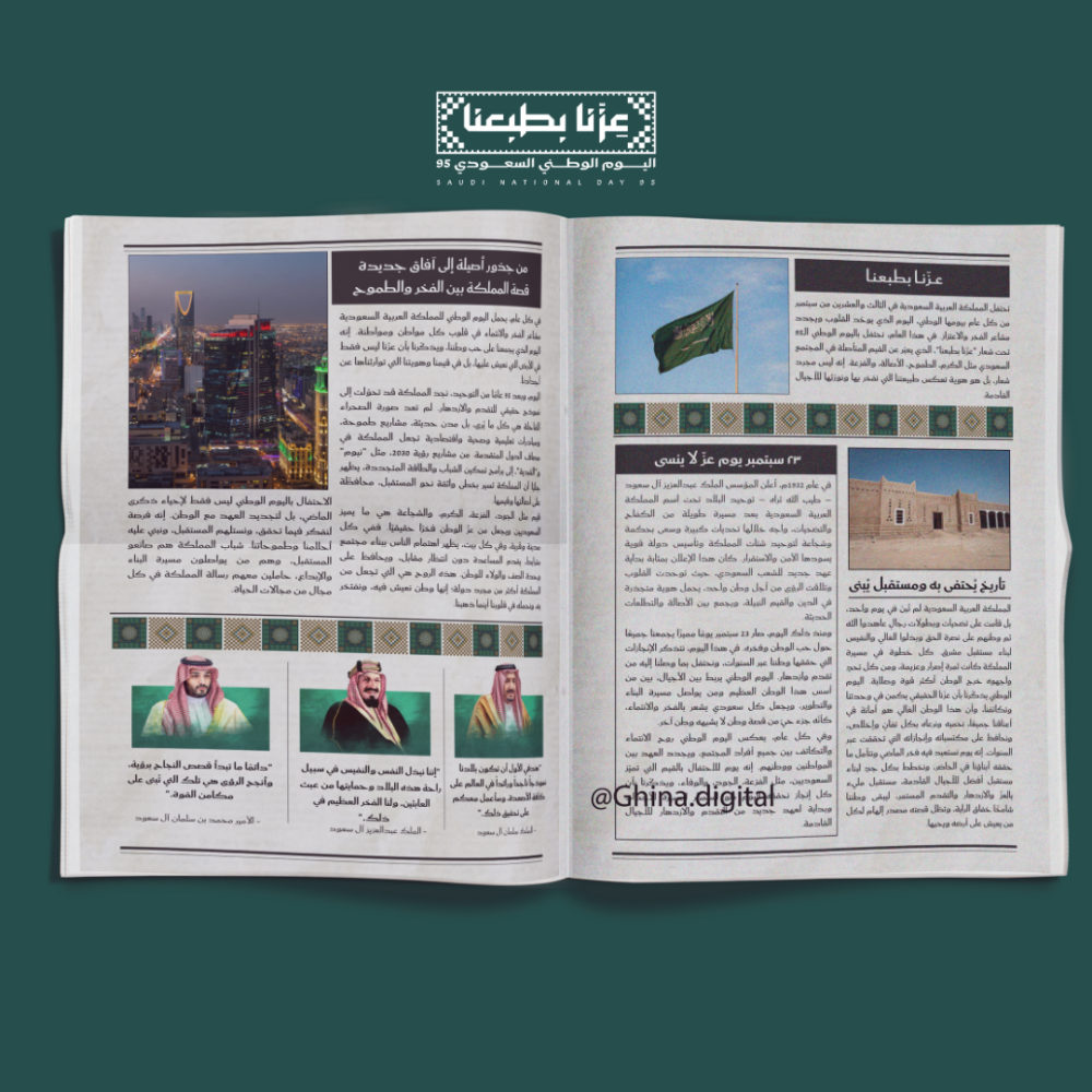 ملف PDF مكون من 4 صفحات بمقاس A3، مصمم بهوية اليوم الوطني السعودي ٩٥.