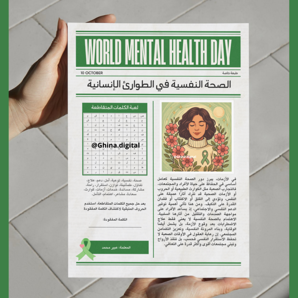 احتفل باليوم العالمي للصحة النفسية بطريقة تعليمية وتفاعلية مع تصميم جريدة مميزة تجمع بين الفائدة والمتعة!