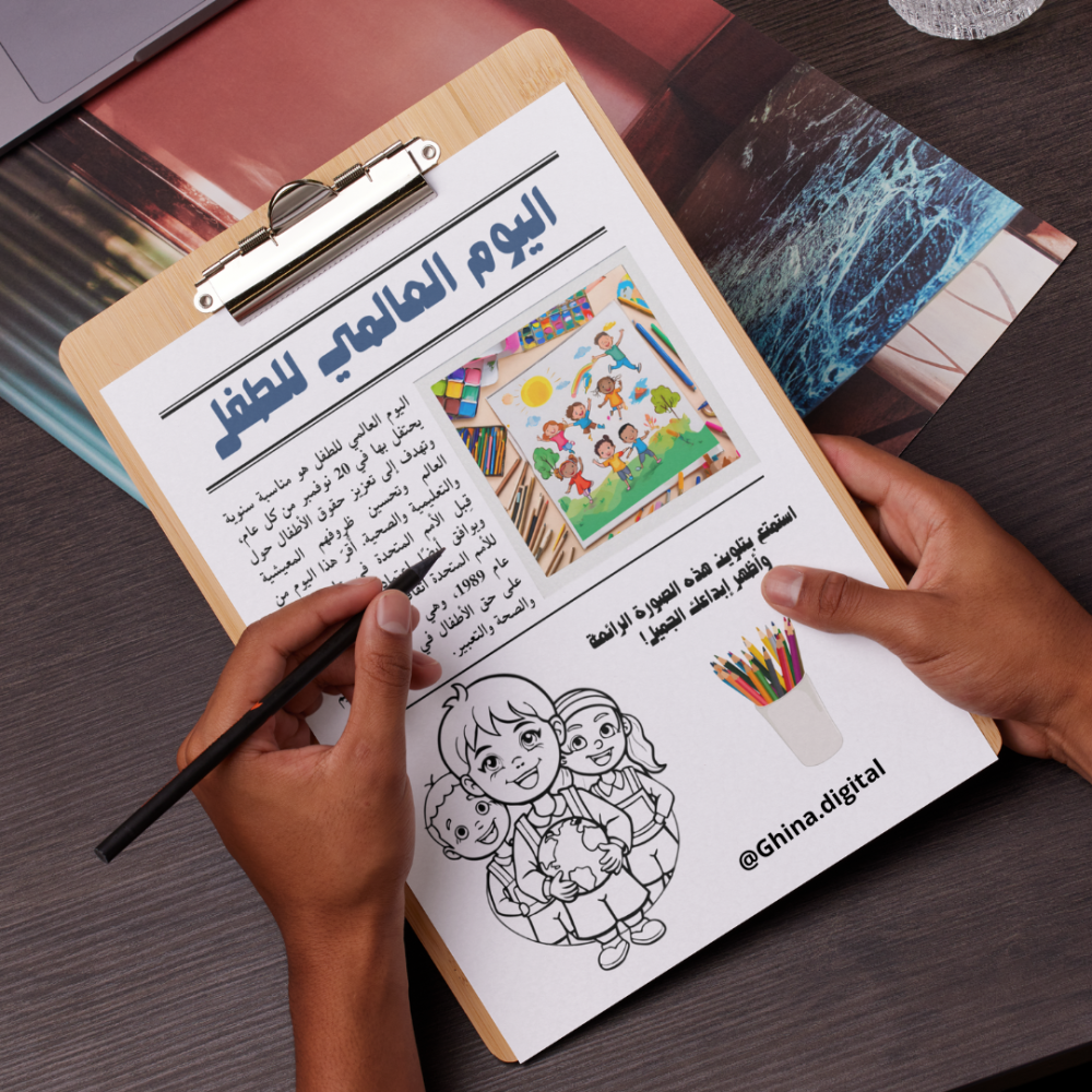 تصميم مميز للاحتفال باليوم العالمي للطفل، يضم تعريفًا بهذا اليوم الخاص