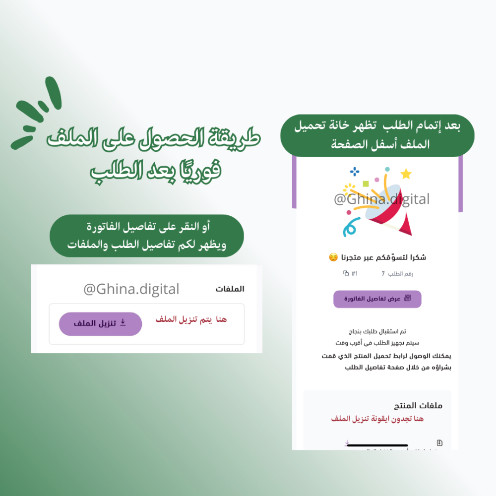 الملف يرفق فوريا بعد إتمام الطلب موضح بالصور طريقة الحصول على الملف