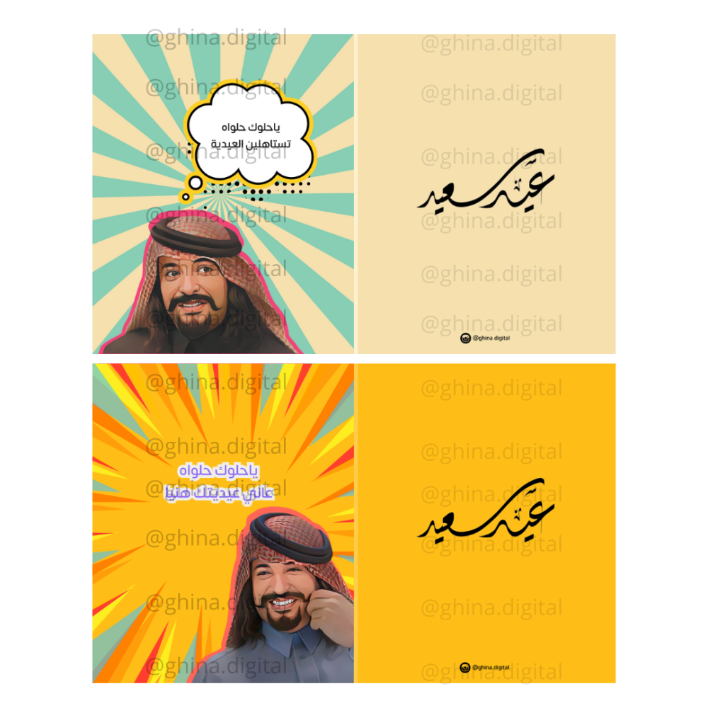 لكروت العيديات بشخصية أم صامل وأبو صامل الشهيرة